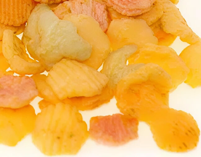 小麦粉を主原料にコーン・ポテト等を加えてフライしたスナック菓子です。